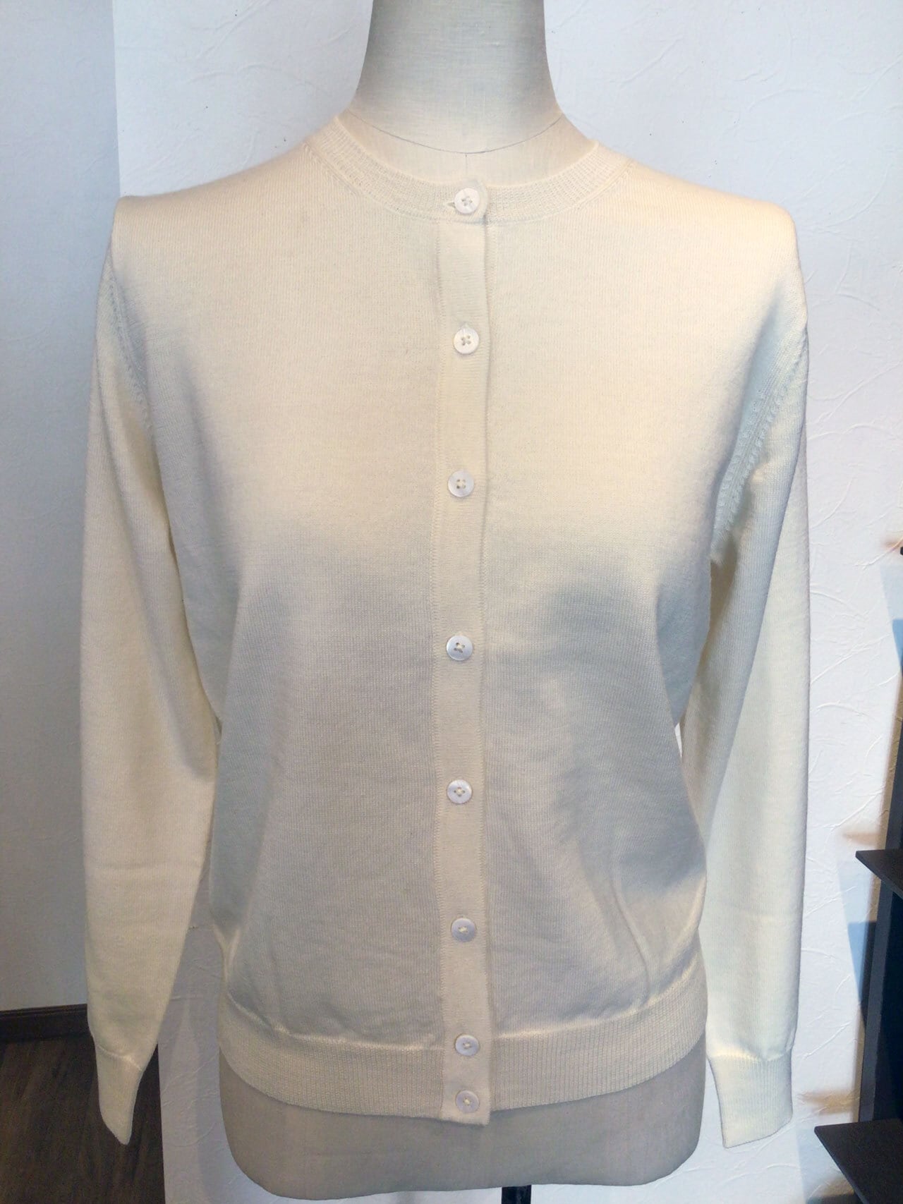 高品質のエキストラファインメリノウールを使用したベーシックなクルーネックカーディガンです。